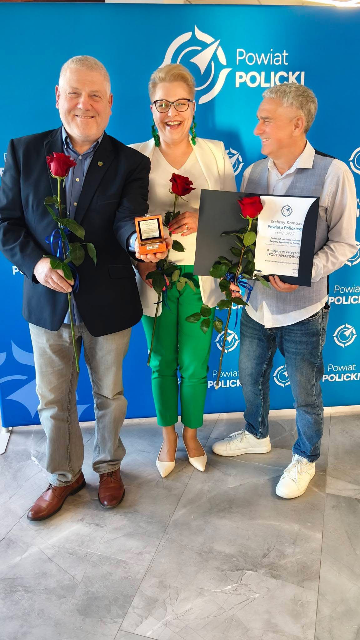 Wręczenia nagród dokonali: Starosta Policki Shivan Fate, Przewodniczący Rady Powiatu w Policach Janusz Szwyd, Wicestarosta Policki Damian Walczak oraz Członek Zarządu Powiatu w Policach Jacek Fabisiak.