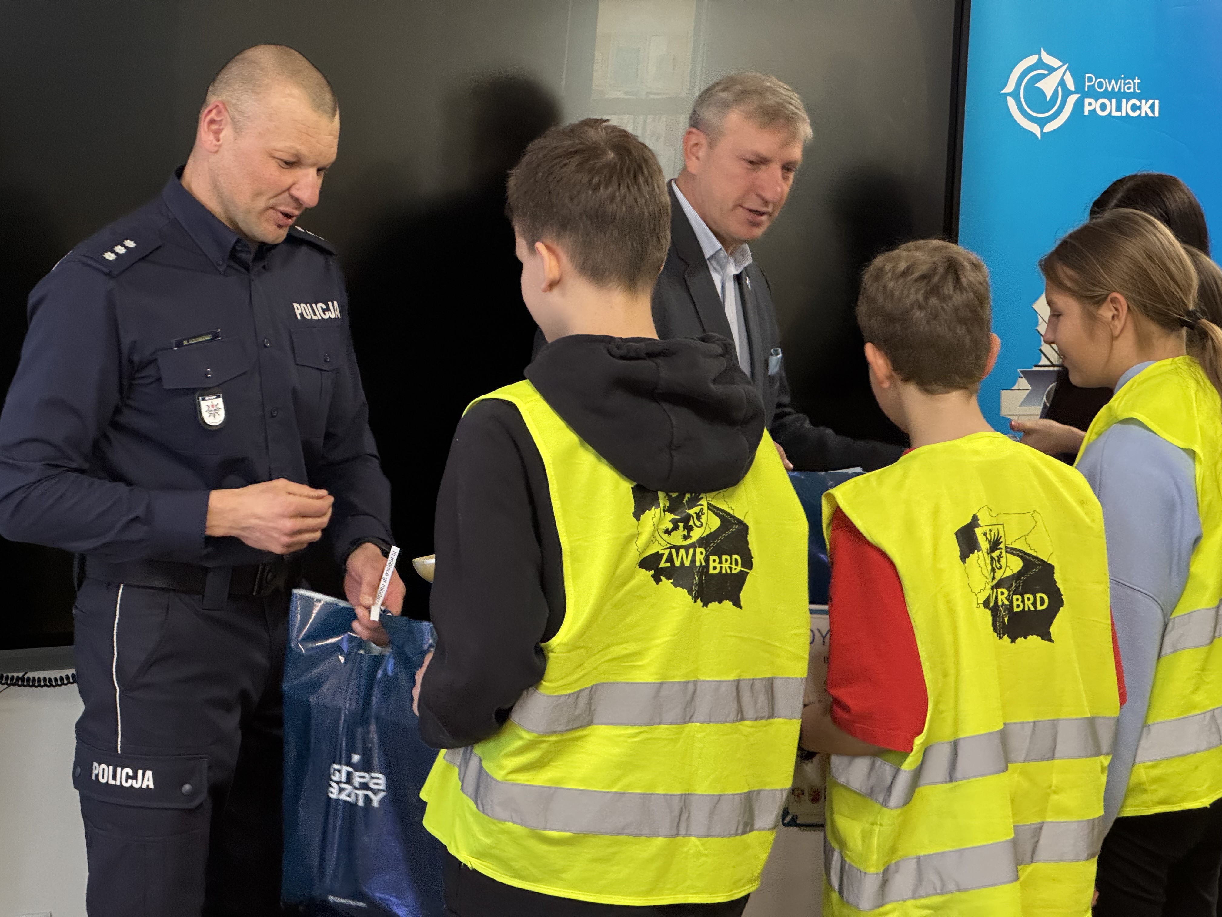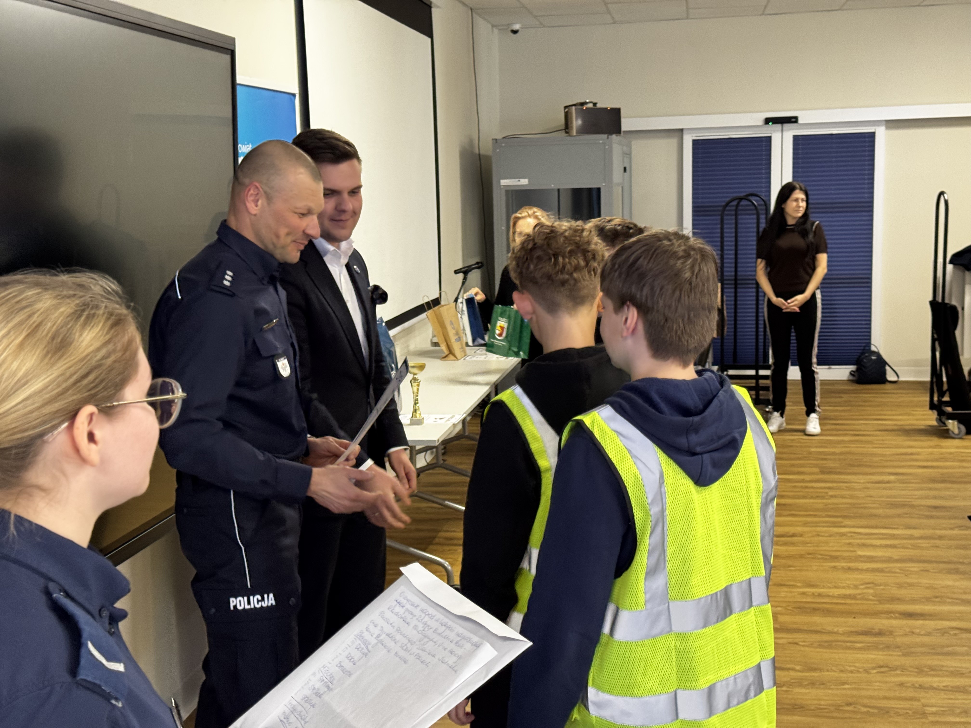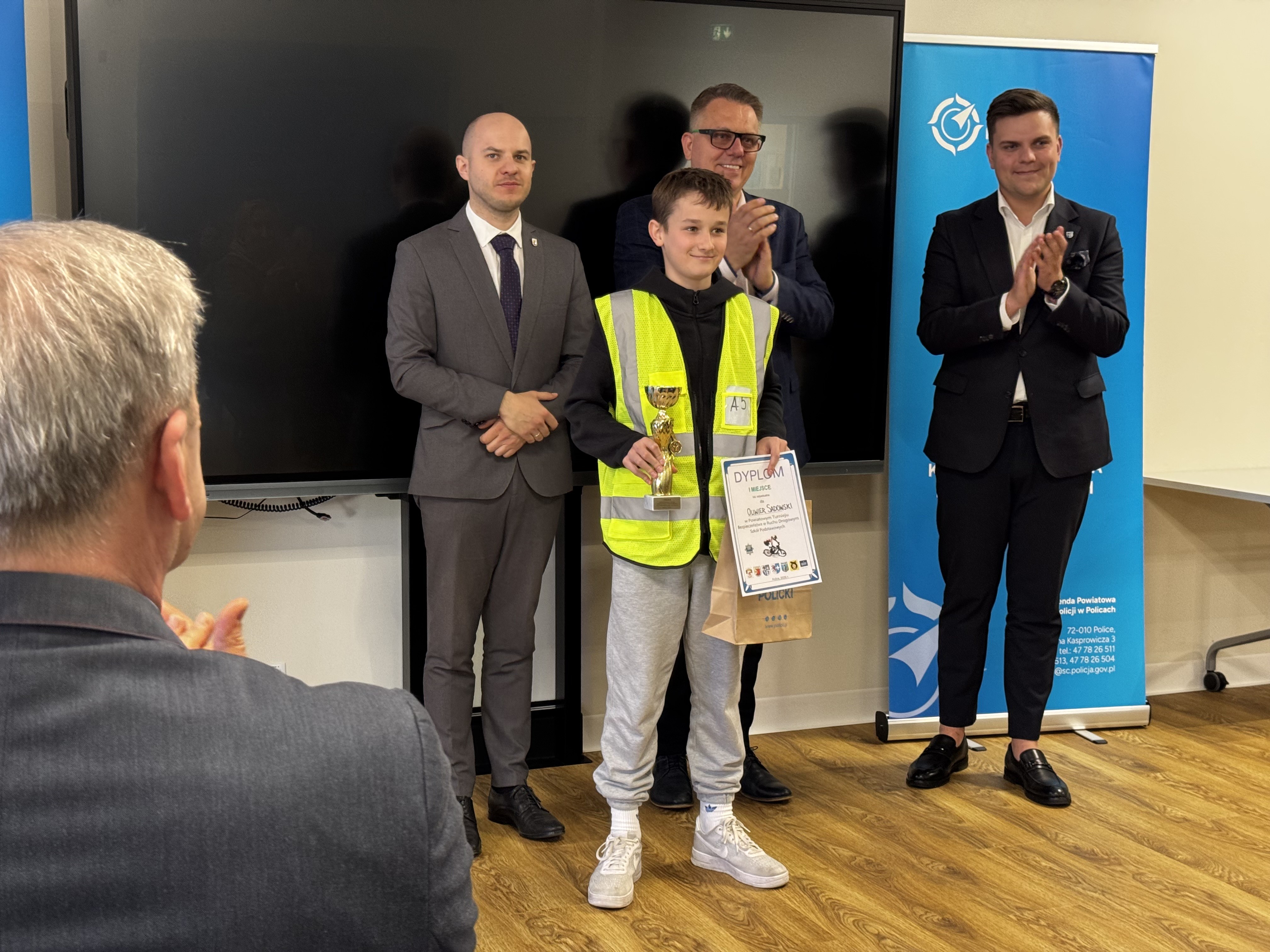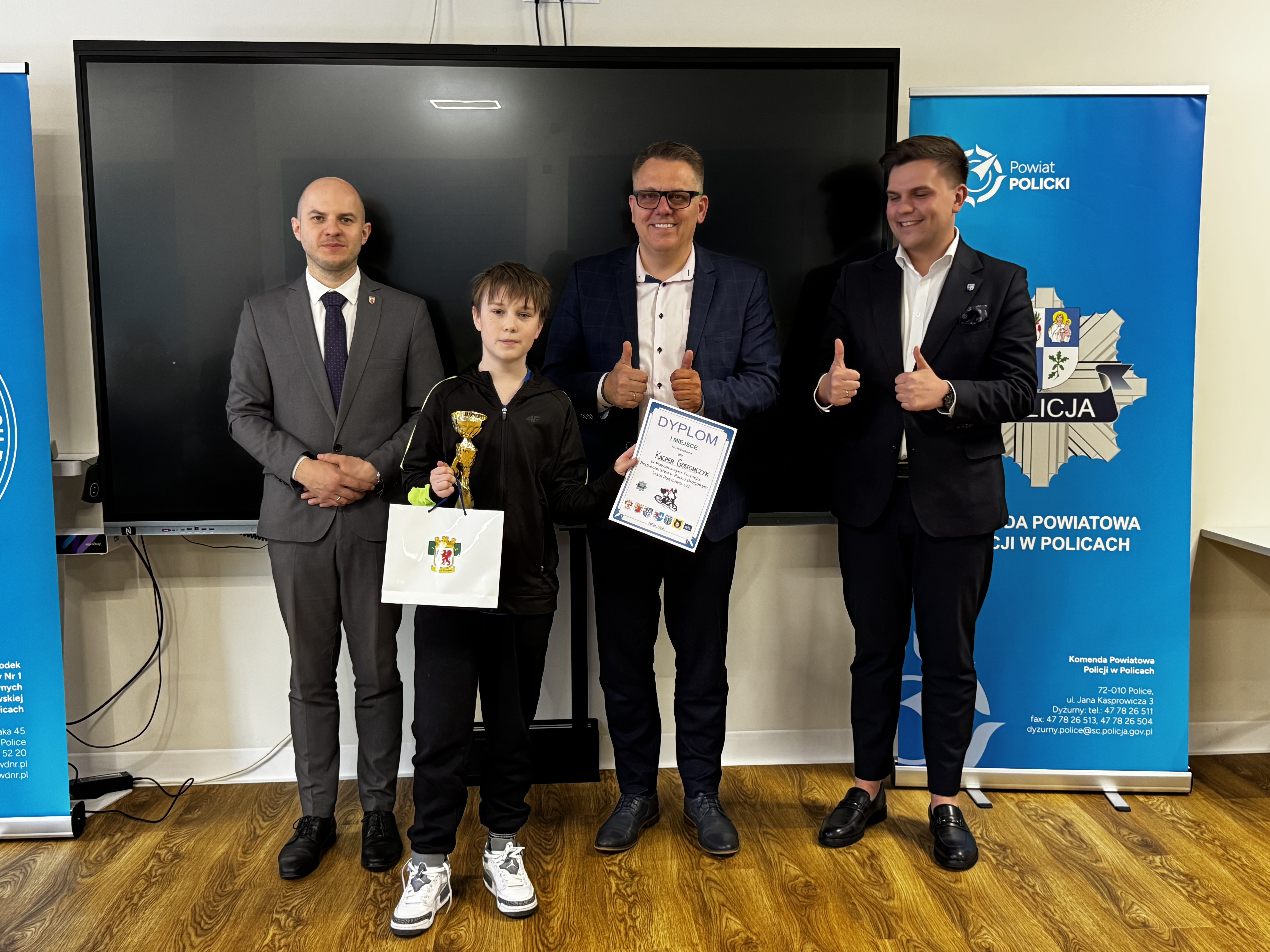 Nagrody dla najlepszych uczestników wręczyli: kom. Marcin Hołoweńko - Zastępca Komendanta Komendy Powiatowej Policji w Policach, asp. sztab. Rafał Idziński - Naczelnik Wydziału Ruchu Drogowego KPP w Policach, Paweł Malinowski - Zastępca Wójta Gminy Dobra, Damian Walczak - Wicestarosta Policki oraz przedstawiciele Gminy Police: Jacek Fabisiak i Radosław Mikołajczyk. W wydarzeniu uczestniczyła również v-ce Przewodnicząca Rady Gminy Dobra - Justyna Suska-Sas.